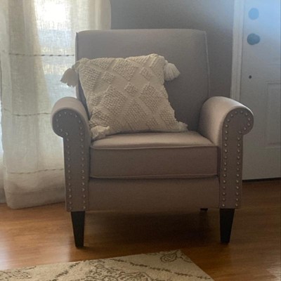 A: does the paisley Janet armchair have the mail heads on the arms? Yes do the cushions remove? No is the fabric nylon like the others? 100% Polyester