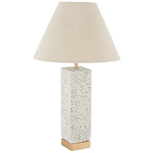 Elevate your space with the Jannise 21-inch table lamp. Featuring a natural and gold finish, this lamp brings a touch of elegance and warmth to any room. The combination of concrete and iron provides a unique and stylish look that complements a variety of decor styles. Whether placed on a bedside table or a living room console, Jannise illuminates your space beautifully. The sturdy metal construction ensures a lasting presence in your home. Its understated yet sophisticated design makes it an ideal choice for anyone looking to enhance their lighting collection. Let Jannise be a beacon of refined design in your home.