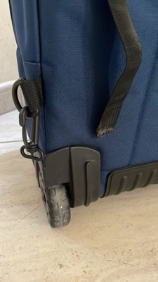 The shoulder straps always get caught on the wheel while pulling it around. Causing the straps to get worn from friction with the wheel. Eventually it will give out and rip apart. This happened in less than a month of use. The sales staff at the store said it has happened to other customers as well. We always tuck the straps away now after we got it repaired.