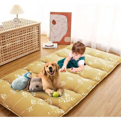 Japanese Style Flowers Printed Futon Floor Mattress for Bedroom Living Room, Foldable & Portable Bed Sleeping Mattress, Blue Full 54*80in