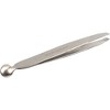 [This review was collected as part of a promotion.] The packaging was a bit of a pain to open because of the pull tab section being directly in the middle. It's also not good because the location of the opening means you have to tear right through the use and care instructions to get the tweezer out. Otherwise, this tweezer is comfortable to grip and a great length. It works best to grab and remove longer hairs that are on the flattest part of your brow. Unfortunately, the tips seem to be slanted at an angle that's too straight to properly grip any smaller hairs. I didn't really notice any benefit to using the ball shaped end of the tweezer.