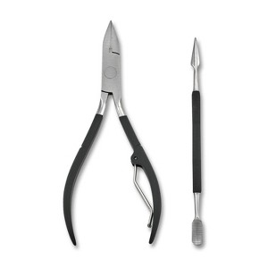 The Japonesque® Toenail Clipper & Cuticle Pusher in our Soft Touch finish features 2 precision crafted nail tools designed to provide salon-like nail care at home. The Toenail Nipper features hand-sharpened, heavy-gauge blades that easily cut through tough toenails. The extra-wide jaw nipper is ideal for thick nails & the ergonomic, anti-slip handle offers you extra control. The dual ended cuticle pusher gently pushes back cuticles, while the pointed end cleans under nails. Constructed with high-quality stainless steel for lasting performance.