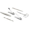 A: The kit includes a fingernail clipper, cuticle scissors, cuticle pusher, nail file, and slant tweezer.