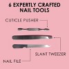 - Nail File: Stainless steel medium-grit file precisely smooths rough edges & pointed tip cleans under nails