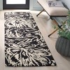 Skillfully made in India, this piece exudes the quality and design integrity of the region's rich textile traditions. The elegant floral pattern, showcased here in the image, depicts a timeless black and ivory contrast that adds a touch of sophistication and charm to any setting. The dramatic florals dance across the rug, bringing an organic and dynamic feel that melds seamlessly with both contemporary and classic interior styles.