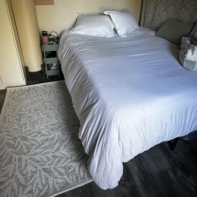 I was happy that the ivory/beige (not to be confused with the beige/ivory) color was pretty accurate, though the rug wasn't quite 8x10. It is 7'7.5" x 9'10.5". It's not super plush but also not too thin.