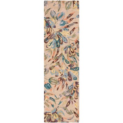 Made with care in India, a country renowned for its rich heritage in rug-making, this rug exudes quality and craftsmanship. The leafy design, showcasing various shades of blue ranging from deep navy to soft powdery hues, unfolds across an inviting ivory background, creating a serene visual that can anchor your space with its natural motif.