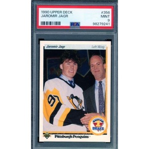 This rookie card features Jaromir Jagr from 1990-91 Upper Deck set. It is graded PSA 9.