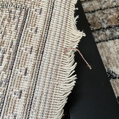 The rug looks nice and like the picture, but isn’t as good of quality as other Safavieh rugs I have. One of the sides with the fringe was in the process of unraveling from both ends. I was able to make a knot around some of the fringe to keep it from getting worse. There was also tangled threads on the bottom in one corner. I also noticed a lot of loose threads when I first opened it. I thought I got all of them off, but once I vacuumed the rug I noticed a bunch in the vacuum. I was sure not to vacuum over the fringe parts and I’m not sure how well they would hold up if you accidentally did.