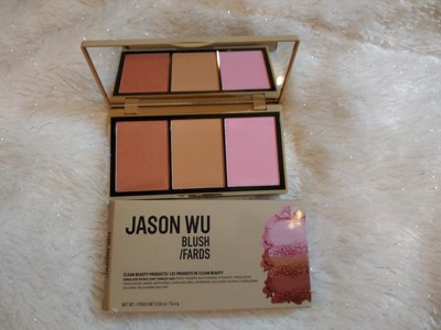 [This review was collected as part of a promotion.] JASON WU Blush Trio: 02 LOVE YOU with colors of Cotton Candy; Caramel Brown; Peachy Nude which are not written on the box or blush compact! These are great and lasting that blend together well or to wear alone! The blush stays long on the skin! The Jason Wu blush trio is soft texture feeling because the formula is vegan and powder healthy ingredients! The cost of this blush trio compact is fair cost and is highly less expensive than other name brands! A Jason Wu blush trio applied on skin just as well if not more effective! I am fair skin and think these colors went well on my skin just as other of the colirs I saw from other blush compacts from Jason Wu! Also any blush trio compact will go well with anyone of any skin tone!