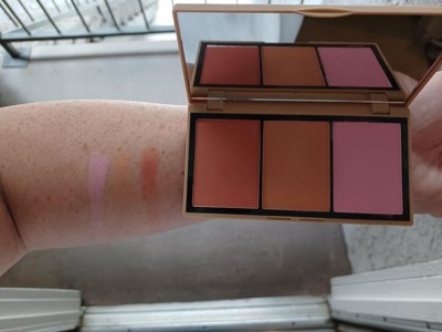 [This review was collected as part of a promotion.] This blush trio is well pigmented and really adds a unique flair to the typical face makeup. It goes on extremely smooth and is lightweight for all day wear. There's 3 different colors ranging from a dark-ish red to a pastel pink.