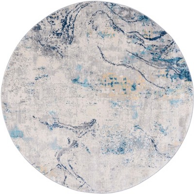Elevate your living space with the exquisite elegance of our 6'-7" X 6'-7" Round area rug, a perfect blend of modern design and artisanal craftsmanship. Boasting a soothing palette of ivory and blue, this round rug brings a tranquil and sophisticated atmosphere to any room.
