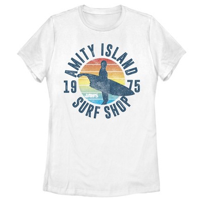 Make a statement with this white crew neck short sleeve t-shirt. Designed with amity island shark tours iconic orca tail sail on white, it brings character and comfort together. Crafted from soft cotton for all-day wearability and simple care.