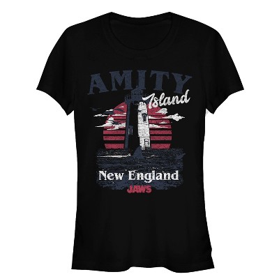 Jaws Franchise Amity Island Surf Boards  Repair New England On Black Adult Crew Neck Short Sleeve T-shirt - 2 of 3Jaws Franchise Amity Island Surf Boards  Repair New England On Black Adult Crew Neck Short Sleeve T-shirt - 3 of 3