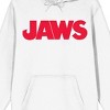 Celebrate your favorite movies in comfort and style with this jaws sweatshirt. The hoodie features big and bold red letters that spell out the movie's title. The sweatshirt comes in white with an adjustable hood and a large pouch pocket. Jaws fans will love this cozy hoodie.