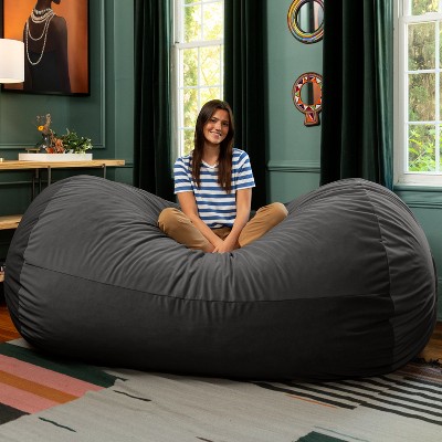 Jaxx 6 Foot Cocoon - 2-in-1 Convertible Bean Bag Bed & Large Bean Bag Chair for Adults, Premium Lush Velvet - Black