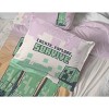 Transform your little gamer's bedroom with this Minecraft Creeper twin bed set. This fun and colorful bed set will dress up any bedroom dcor! Set includes one comforter, one flat sheet, one fitted sheet, one pillowcase and one standard pillow sham. Sure to keep your little one warm, this comforter is stuffed with light polyester fill for loft and cozy comfort all year round. Comforter measures 64 x 86 inches, flat sheet measures 66 x 96, fitted sheet measures 39 x 75, and standard sham measures 20 x 26 inches. To clean machine wash cold and tumble dry low.