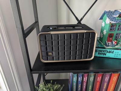 We have this for a while now and we loved. The sound is amazing, speaker seats on 8 small rubbers 2 each corner, they are helping to cancel vibration so compare to other speaker you don’t need to look space with nothing close to it if you want to use it with high volume bass. Retro design is probably not for everyone but for our place is fantastic we like antics and with this you have mix of technology fitted in to retro box. Of course is smart speaker so you can use Alexa, google and all you actually needs from speaker. Great job JBL