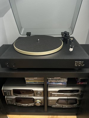 The last time I used vinyl player it was almost 30 years ago. I always wanted one as an adult but never got round to it till my older children started to say that it would be so cool to have it. I was so excited when I ordered JBL spinner. I liked the look and simplicity but the same time elegant design with black and gold which matching with my JBL authentic 300 speaker. It looks great together and gives a character to a room. I love that it has a Bluetooth connection and I can keep the speaker in a kitchen when cooking and listen to the music. In my opinion the sound is great. The only downside that vinyl is expensive but it gave me a new opportunity for a new passion to go to charity shops more often to look for authentic vinyl for the good price.