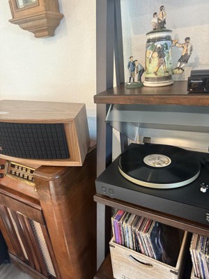 I’ve wanted a Bluetooth turntable for a little while now so I got the JBL Spinner BT. So far I like it a lot. The only things I would’ve done differently is maybe put the power switch and Bluetooth connect button in a more accessible location, not the back. Also, there’s no place to keep the little 45 adapter. I would have put a post or something on top to keep it from sliding around. I also would have made the tonearm up and down lever the lighter color of the anti skate adjust dial as it’s pretty hard to see when the lights are low. I’ve run it on Bluetooth and wired analog and I can’t tell the difference. In all I’ll say this is a great addition to my system. Nice work Jbl!