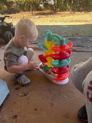 [This review was collected as part of a promotion.] Great beginner toy for toddlers! This is a good sized garage for kids who are learning to use hand eye coordination. It comes with three balls and three little cars that roll down. It keeps my boys distracted for hours which is nice for any toddler parent. It is made of sturdy plastic so it is good with my rough boys, and easy to clean. For sure a good purchase!