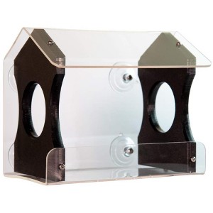 EASY VIEWING: Enjoy watching wild birds up close--right at your window!HIGH QUALITY: Suction cups are the best you can buy - these are not cheap and flimsy imports. 4 suction cups will hold up your feeder unaffected by weather and temperature (2 on top and 2 on bottom). Stainless steel screws attached to the suction cups that will not rustEASY DRAINAGE: Seed tray has drainage holesHAND-MADE AND ENVIRONMENTAL: Made at our location at JCs Wildlife using recycled poly lumberATTRACTIVE DESIGN FOR BIRDS: Birds that use this feeder Cardinals, Bluebirds, Downy Woodpeckers, Chickadees, Finches, Goldfinches, Nuthatches, Redpolls, Song Sparrows, Titmice and Siskins.**Birds Attracted to This Feeder: Birds that use this feeder Cardinals, Bluebirds, Downy Woodpeckers, Chickadees, Finches, Goldfinches, Nuthatches, Redpolls, Song Sparrows, Titmice and Siskins.** Enjoy watching wild birds up close--right at your window. Suction cups are the best you can buy - these are not cheap and flimsy imports 4 suction cups will hold up your feeder unaffected by weather and temperature (2 on top and 2 on bottom) Stainless steel screws attached to the suction cups will not rust Specifications:Width: 9.5 in.Height: 7.5 in.Deep: 7 in.Capacity: 3 cupsOpening Size: 4 in. (front) and 2.75 in. (side portals)Construction: Acrylic and Recycled Poly Lumber SidesMounting: Suction cups, providedBirds That Would Use This Feeder: Cardinals, Bluebirds, Downy Woodpeckers, Song Sparrows, Finches, Titmice, and SiskinsSeed or Feed Options: Black oil sunflower seed mix with sunflower and white proso miletMade in the USA!