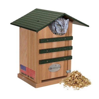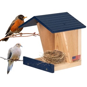 EASY INSTALLATION: This roost is very easy to hang with pre-drilled mounting holesENVIRONMENTAL: Made of clear cedar and eco-friendly recycled poly lumber. Recycled poly lumber is guaranteed not to crack, split, or fadeEASY TO CLEAN: Open design and recycled poly lumber allows for easy cleaningDIMENSIONS: 9.5" W x 8" D x 9.25" HThe JCs Wildlife Modern Style Robin Roost is a basic roost home and is made of cedar and earth-friendly recycled poly lumber. This roost is very easy to hang with pre-drilled mounting holes and included mounting screws. Open roost design makes it easy to clean out from year to year. Attracts Robins, Doves, Phoebes, and Swallows. Made in our own shop in Southern Indiana!Specifications:Dimensions: 9.5" W x 8" D x 9.25" HConstruction: Cedar and Recycled Poly LumberBirds That Would Use This: Robins, Doves, Phoebes, SwallowsMade in the USA!