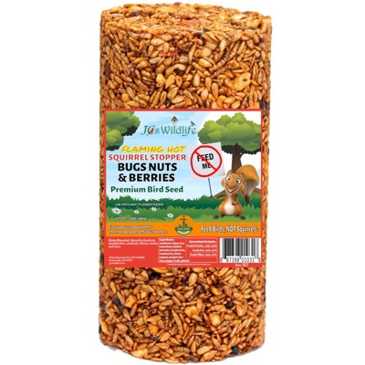Give your backyard birds a gourmet treat they’ll flock to—without inviting squirrels to the party. The JCS Wildlife Squirrel Stopper Bugs, Nuts & Berries Large Cylinder is a 3.8lb powerhouse of premium ingredients, including sunflower chips, tree nuts, cranberries, and protein-rich mealworms. Infused with capsaicin to naturally deter squirrels, this no-mess, no-waste seed cylinder is designed to attract a vibrant variety of wild birds while keeping your feeders clean and critter-free.