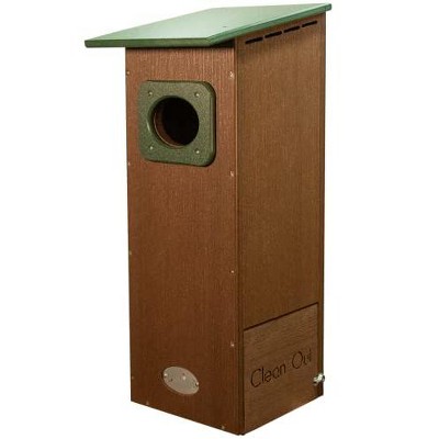 This beautiful hand-made squirrel house is made by JCS Wildlife with recycled Poly Lumber. It features all screwed construction using weather-resistant deck screws and fully routed edges. The Poly Lumber won't split, crack, chip, fade, or splinter. This house's resilient construction and innovative design is sure to entertain and protect its small furry inhabitants. The predator guard and multi-tier platforms prevent predators like raccoons and opossums from having access to the inside. The front is able to be opened, providing easy access to clean the inside when it is empty. Made in the USA!Specifications:Outside Dimensions: 14.25" W X 18.75" H X 12.75" DInside Dimensions: 8" W X 18" H X 8.25" DEntrance Hole Diameter: 3"Entrance Hole Height: .5" from top platform, 11.5" from floorConstruction: Recycled Poly LumberOrigin Country: USA