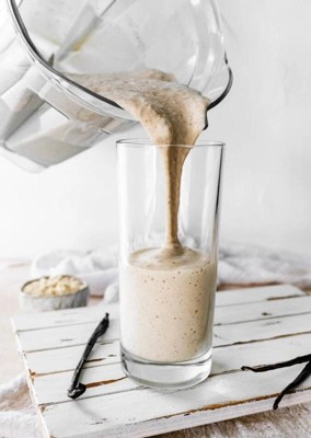A: Great Question. Please know that we do not recommend using cashew milk. Based on testing results we recommend Soy, Almond and Coconut Milks as a milk replacement. You can use 1-1/2 cups of either Soy, Almond or Coconut in place of 2 cups of milk.