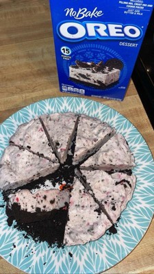 - Jell-O No Bake Oreo Dessert Kit features a chocolate cookie crust, cookies and cream filling, and cookie piece topping