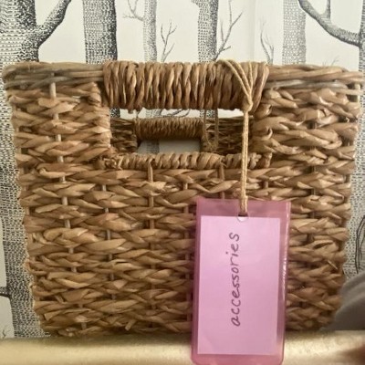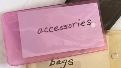 This was exactly what I was looking for… not for travel but for home organizing! And I found it at my local Target store. I needed a way to add labels to these seagrass baskets (another Target favorite product) so everyone can read the label and know what’s inside. To customize this product for my project, I pasted paper to the cardstock label that came with the tags and hand-lettered them with the basket’s contents. Then I added natural craft string to tie the tags onto the basket (the plastic loops that came with the tags probably work fine for a travel bag but they were too tight for what my project needed. I really love how the natural string blends in with the basket and the length can be adjusted as needed. I bought 12 packs total for the various baskets in my closets that are now labeled. At $3.99/2 tags, it added up quickly but the good quality and being able to reuse them later added to their value.