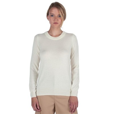 JENNIE LIU Women's 100% Pure Cashmere Long Sleeve Pullover V Neck Sweater 8160, Cream, X-Small