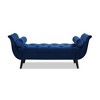 Add a modern glam twist to any space with the Alma Flared Arm Bench by Jennifer Taylor Home. The graceful silhouette is punctuated with two matching bolster pillows and tapered Mid-Century Modern legs for an occasional sitting bench that is sure to impress. The Alma Bench is perfectly suited at the end of the bed, in the entryway, or to complete a living room seating arrangement. The seat is tufted in a lovely diamond button technique that is stylish and comfortable. Features: - 64.5 inches length including the flared armrests -Seat height of 17 inches from floor to seat - Two matching round bolster pillows - Medium firm seat feel for supportive comfort - Espresso Black Brown solid wood legs - Available in plush velvet and polyester upholstery - Classic, Mid-Century Modern, Glam styles Details: - Overall Dimensions: 64.5"WX20"DX25.5"H - Overall Weight: 45LBS - Weight Capacity: 300 LBS - Number of Shipping Boxes: 1 - Assembly required - Care Instructions: Dry clean or spot clean only *Fabric swatch available upon request