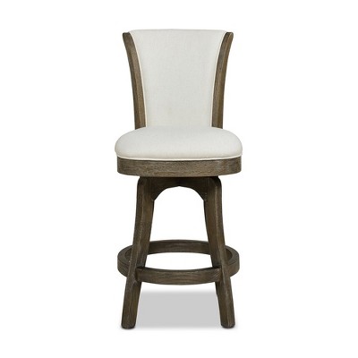 The Henry Swivel Bar Stool Collection by Jennifer Taylor Home puts a spin on that classic bar stool flair. Featuring a convenient 360-degree swivel seat complete with a plush upholstered backrest and convenient foot rest, these oak bar stools capture that natural farmhouse vintage chic with a textured wood frame in a rich stain. Available in counter seat height, the Henry lets you wine and dine in comfort whether it�s at your in-home pub table or kitchen counter. A brass kickplate is included on the ringed footrest to preserve and protect the style of your stool. Features: - High backrest support and upholstered seat provide a luxurious, medium-firm sitting experience -360 degree swivel function for easy access to the seat - Solid hardwood frame and legs cut and crafted with a textured wood grain for a beautiful, natural style - 360 degree full footrest is a convenient place to place feet and brass-plated for protection - Available in counter height to use with a counter table or counter kitchen island - Available in linen and faux leather upholstery - Modern, Rustic, Country, Traditional styles Details: - Overall Dimensions: 18"WX23"DX42"H - Overall Weight: 29LBS - Weight Capacity: 300 LBS - Number of Shipping Boxes: 1 - Assembly required - Care Instructions: Spot clean only / cleaned using a soft brush *Fabric swatch available upon request