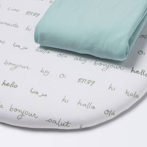 Jersey Bassinet Fitted Sheet Hello and Solid Green - 2pk - Cloud Island™