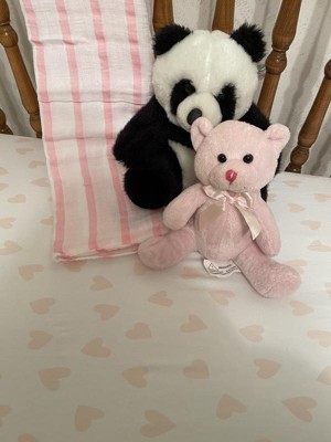 - Includes 1 solid pink and 1 pink heart-print crib sheet