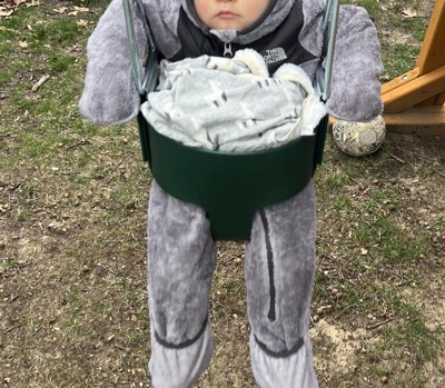 - Faux-fur reverse is soft and warm against baby's skin