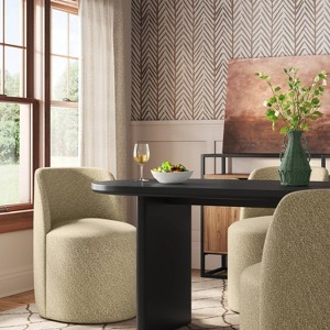 Stay in style by accenting your dining area with the Jessa Dining Chair from Threshold™. This armless dining chair features a round seat with a back for a modern look you'll love. Set on a wooden frame, this upholstered dining chair adds comfortable seating to your space.