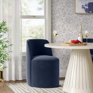 Stay in style by accenting your dining area with the Jessa Dining Chair from Threshold™. This armless dining chair features a round seat with a back for a modern look you'll love. Set on a wooden frame, this upholstered dining chair adds comfortable seating to your space.