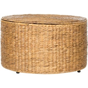 I love this coffee table. It does have a slightly more gray color to it and isn't this bright, natural color. It looks great in my living room and with my rug so I am happy with the outcome. The inside is lined and the liner can be removed for easy washing. Great quality!