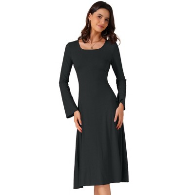 A: The dress features a classic A-line silhouette that flatters various body types.