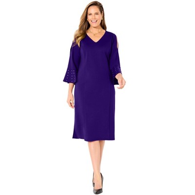 Jessica London Long Sleeve Stretch Ponte Dress - 12 W, Dark Berry