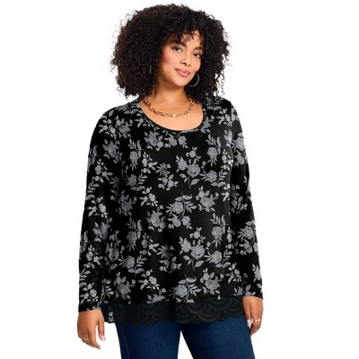 Avenue Lace Hem Crewneck Tunic