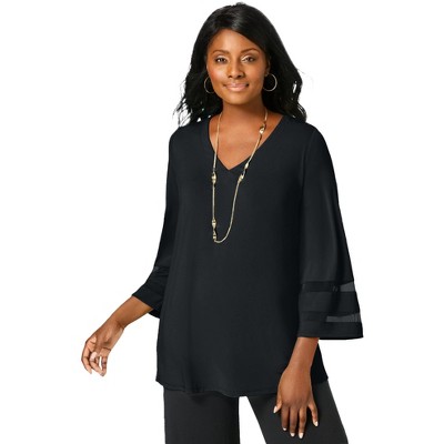Jessica London Stretch Knit Mesh Inset Sleeve Tunic