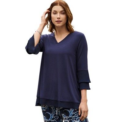 Studded embellishments add a unique touch to the Jessica London women's plus size V-Neck Embellished Tunic from the Everyday Knit Collection. Pair it with other essentials from our Everyday Knit Collection, such as our Wide Leg Pantsor Wide Leg CropPants—you reallycan't go wrong..
