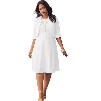 Jessica London 2-Piece Stretch Crepe Single-Breasted Jacket Dress - 32 W, White