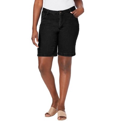 Jessica London Comfort Waist Stretch Denim Bermuda Short - 12 W, Black