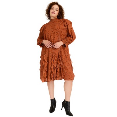 Jessica London Mockneck Slit Maxi Dress - 30 W, Copper Red