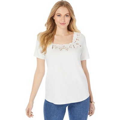 Jessica London Stretch Cotton Boatneck Tunic - 18/20, White